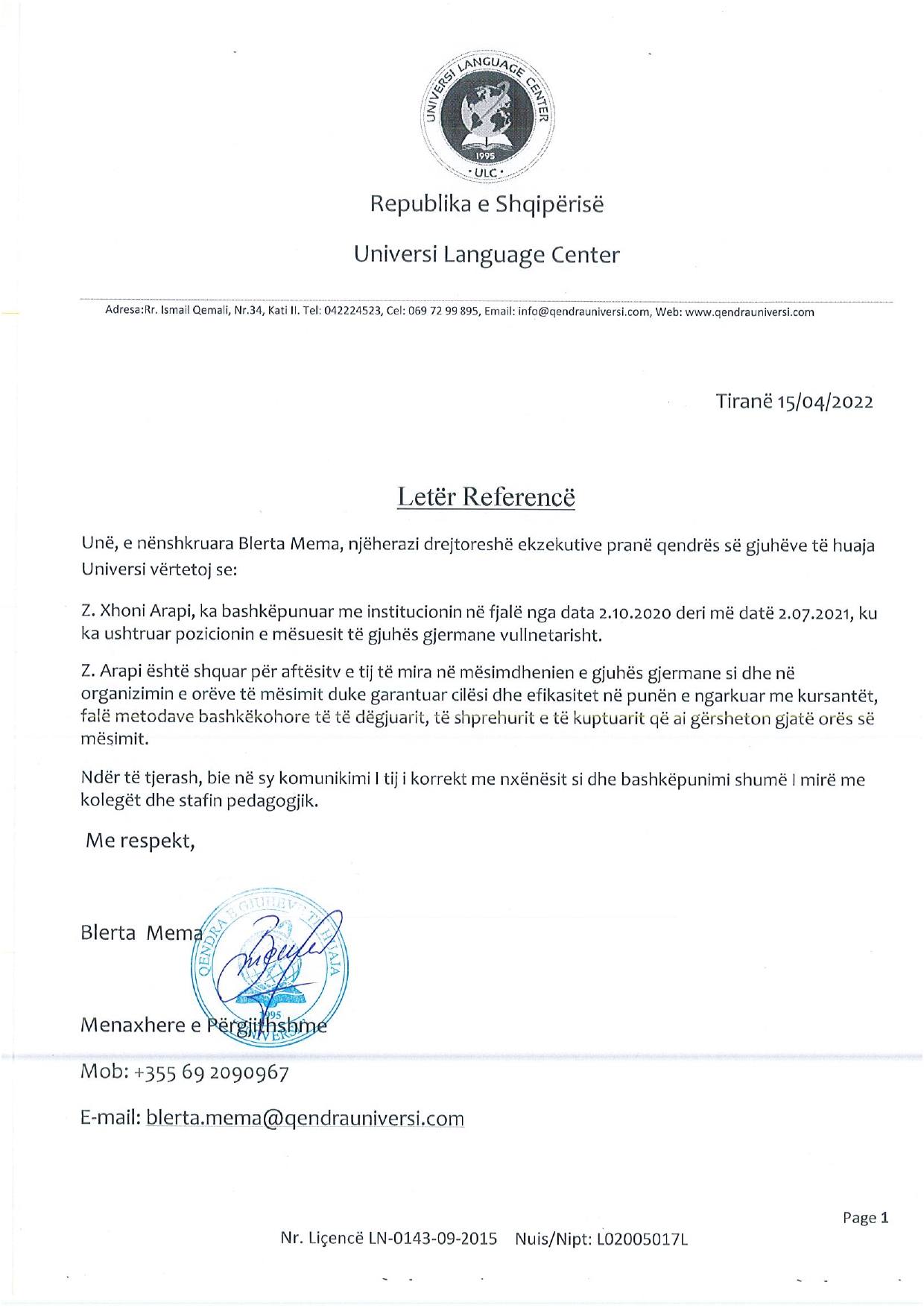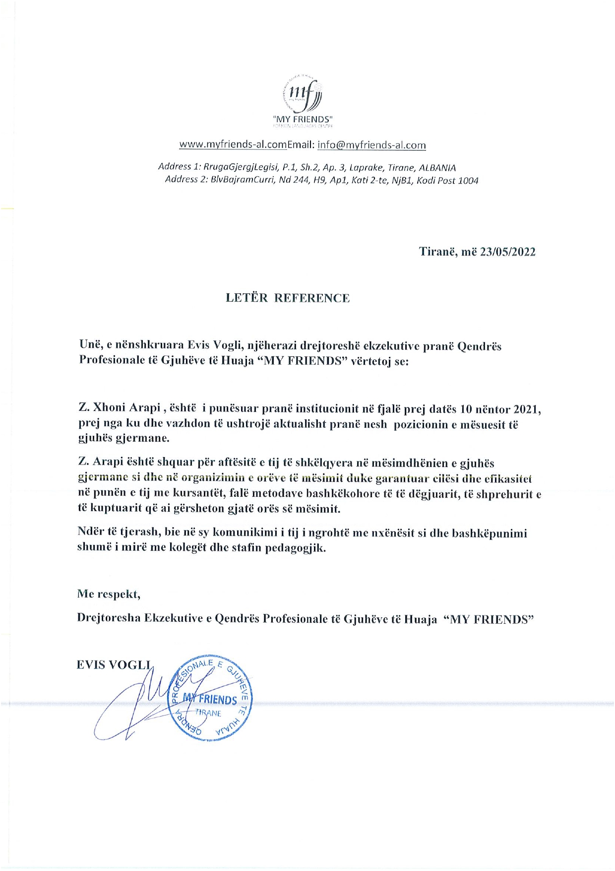 Xhoni është një mësues që di të motivojë. Më bëri të dua gjermanishten edhe pse e kisha menduar të vështirë.